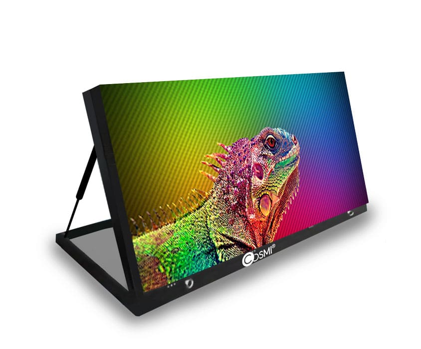 Pantalla publicidad Led Full Color P5 para exterior (outdoor) apertura delantera de alto brillo y bajo consumo, integrada en un solido chasis de metal.