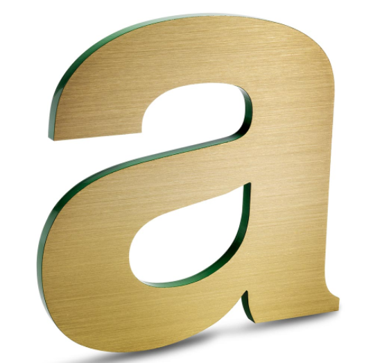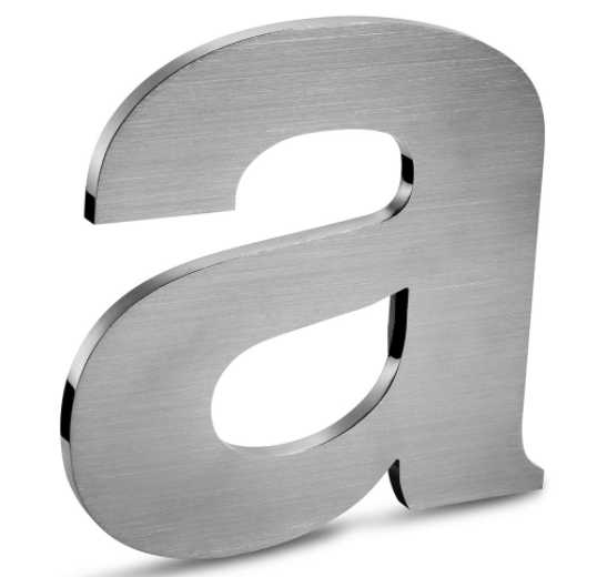 Disponible en cuatro tipos metal y todos los diseños arquitectónicos para logos y textos, con medidas según necesidad. Los acabados incluyen pulido espejo, satinado extra fino para curso, orbitales aleatorios, no direccionales, abalorios de vidrio y pintado de cantos si el diseño lo requiere.