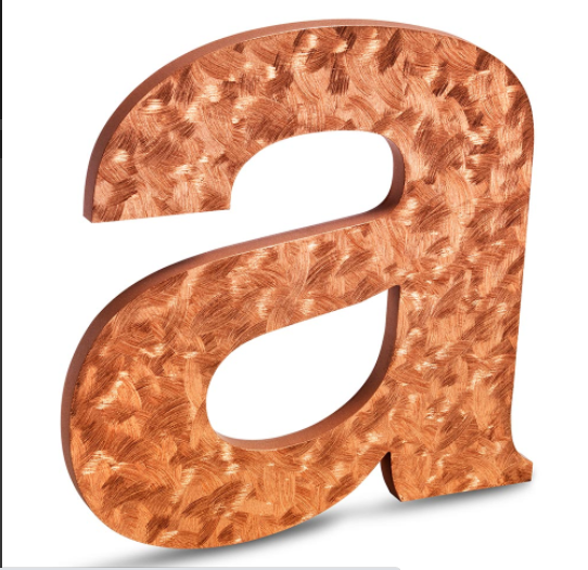 Letras corporeas de metal macizo en cuatro calidades Cobre – Acero – Acero rayado -Latón. Un producto que proporcionará un rótulo elegante para su establecimiento y muy decorativo en interiores.