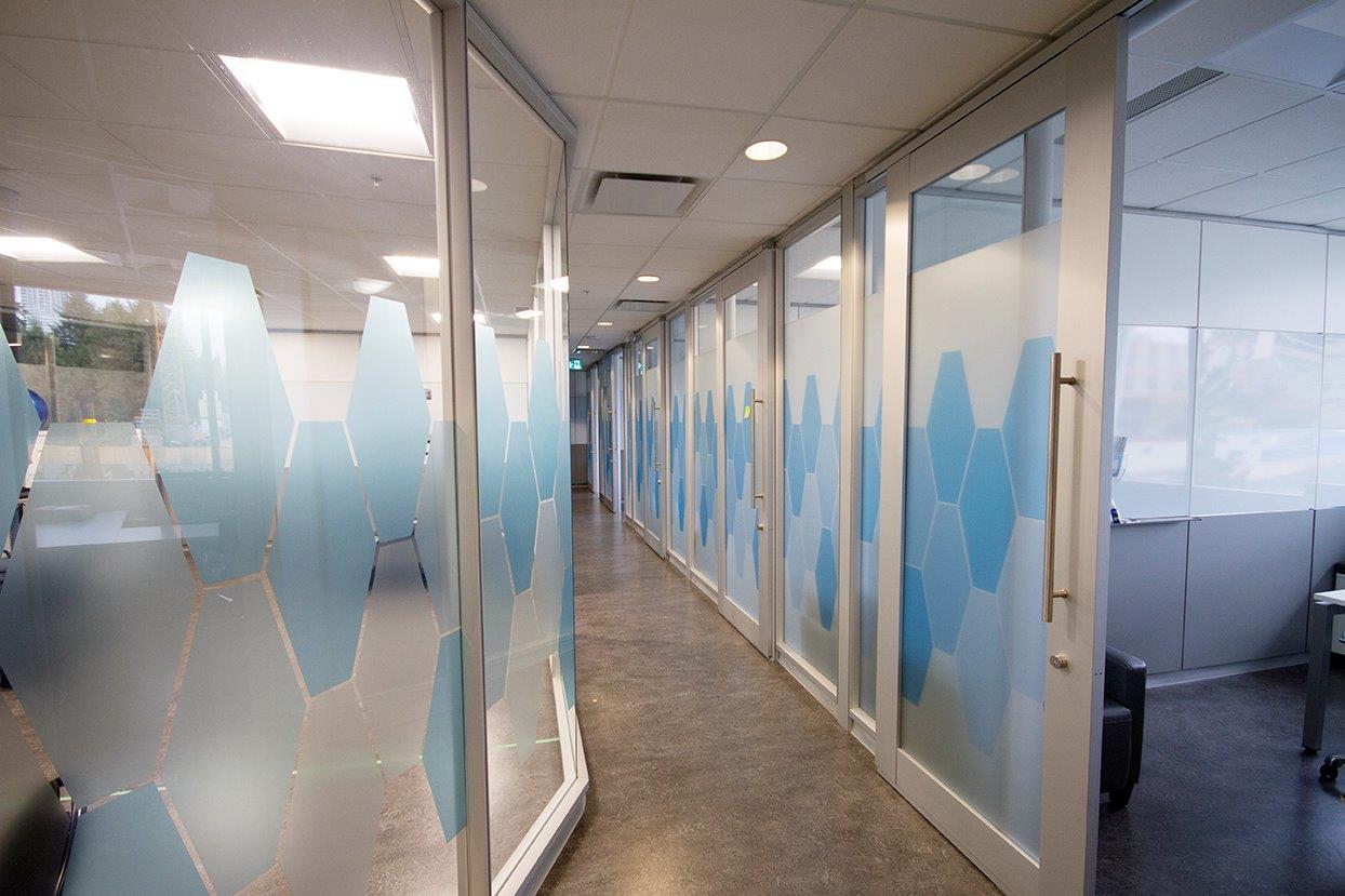 Con acabado chorro de arena este vinilo evita que pueda visualizarse lo que hay detrás pero dejando pasar la luz.