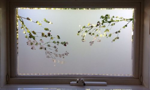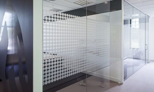 Vinilo al ácido adhesivo efecto arena o esmerilado combina la posibilidad de decorar los cristales con la de comunicar de forma visual mediante imágenes y logos.